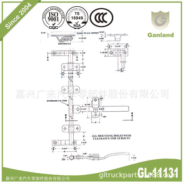 📚 GL-11131铸造锁头锁座铁镀锌四分门锁物流车厢式锁具天地长杆锁