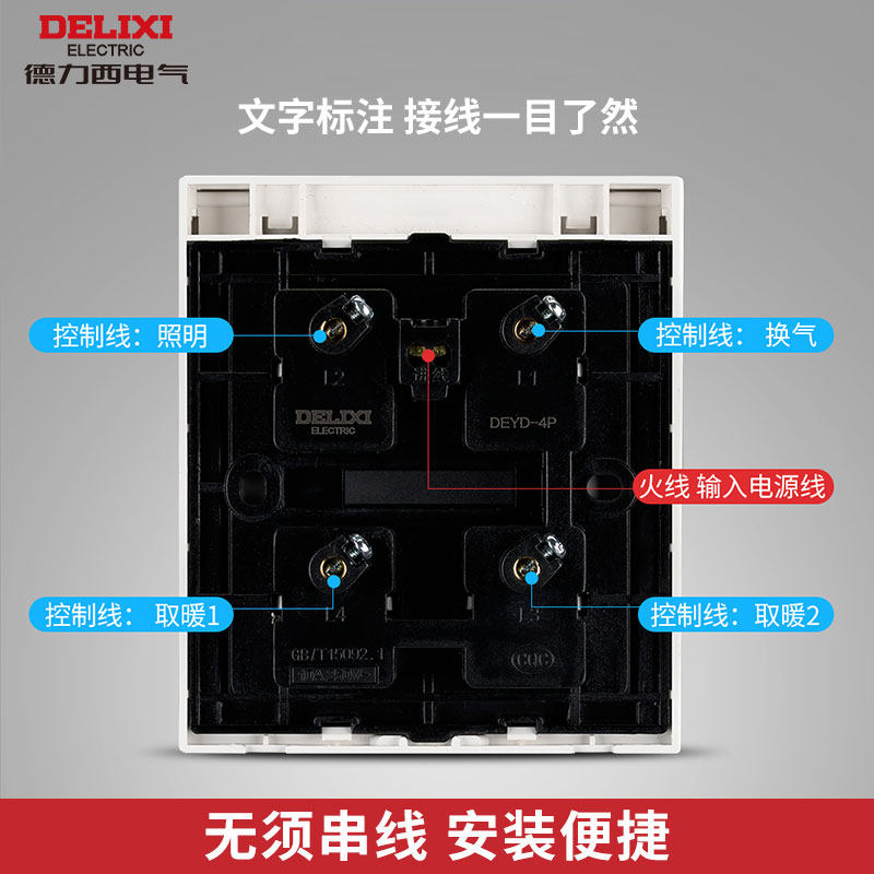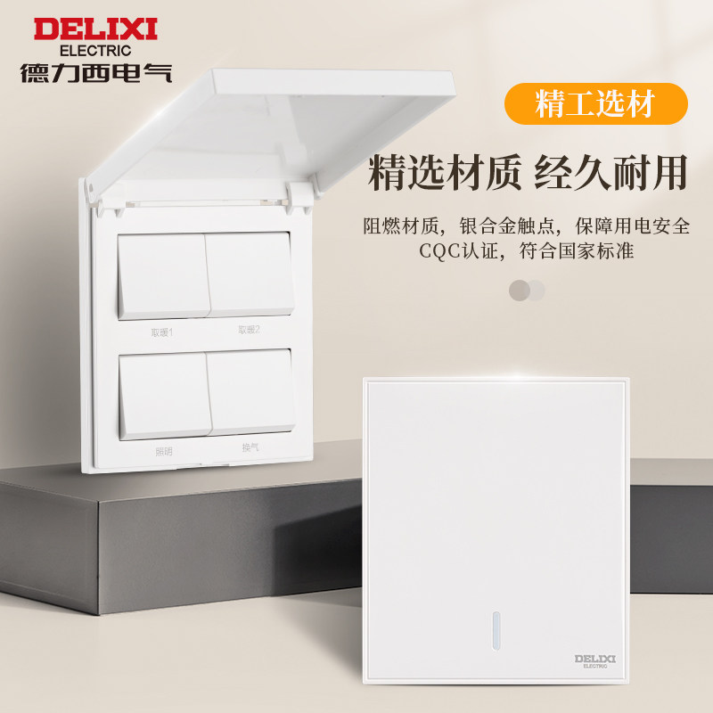 📚 德力西浴霸开关四开换气照明一体四合一家用卫生间防水罩通用面板