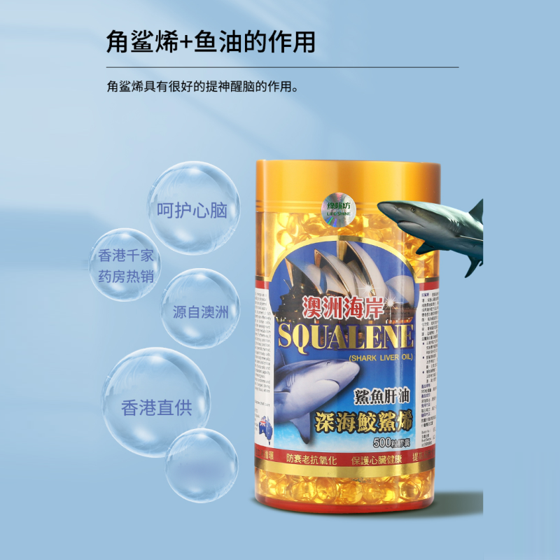 📚 香港进口澳洲海岸鲛鲨烯胶囊深海鱼油角鲨烯保健品500毫克*500粒