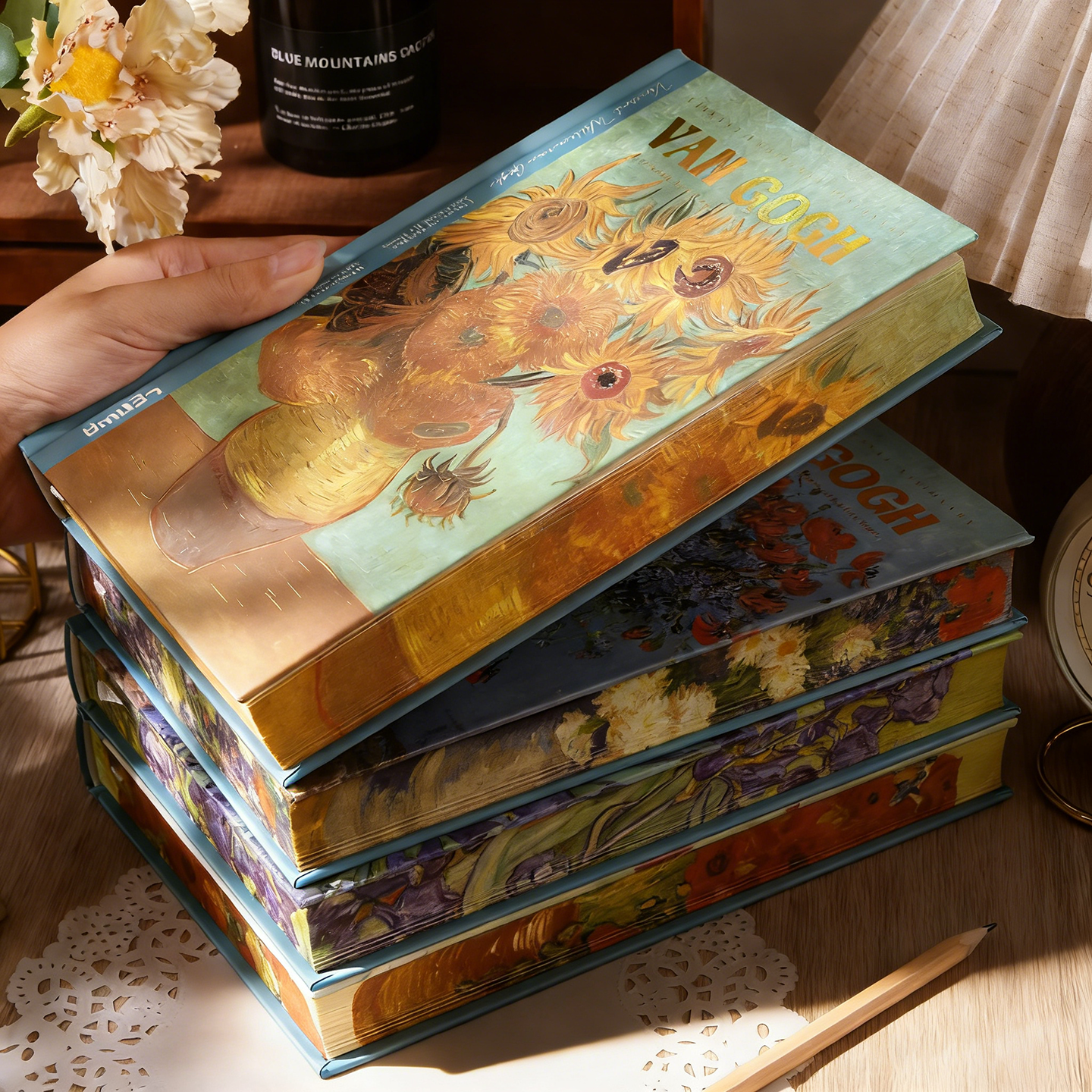 📚 联华A5梵高之花日记本油画精装笔记本子高颜值手账本加厚空白办公记事本生日礼物创意文具