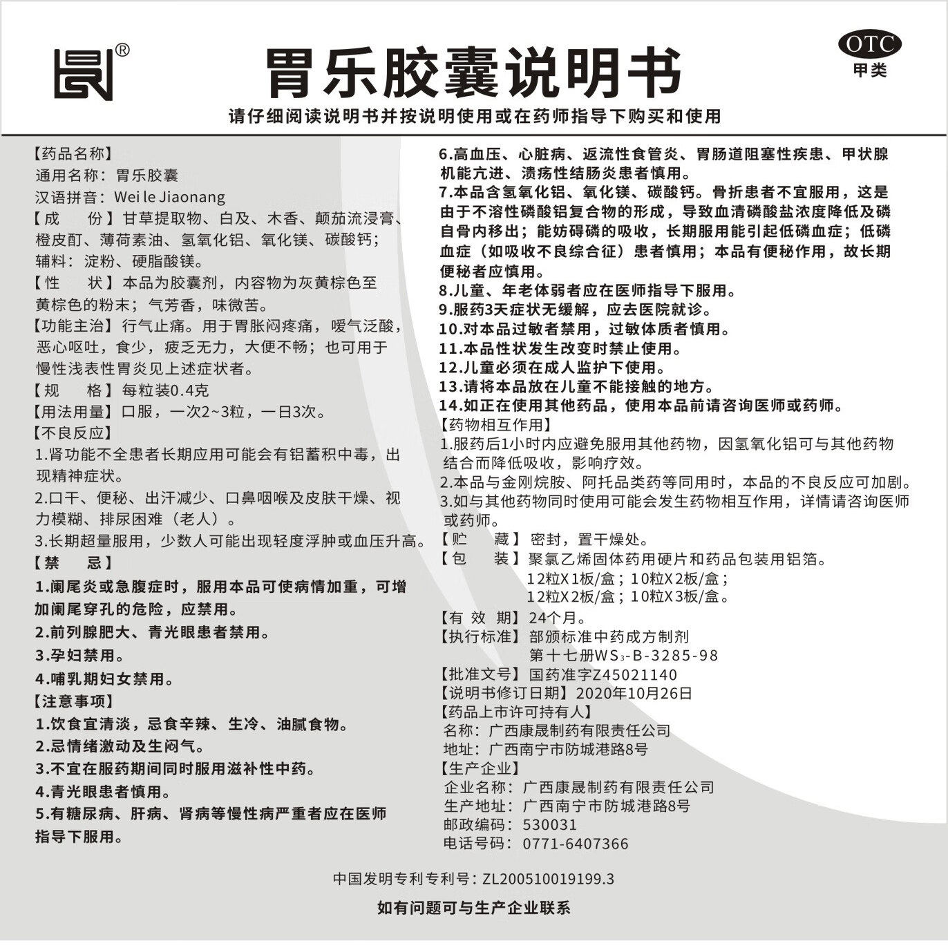 📚 广西康晟 胃乐胶囊 24粒 行气止痛嗳气泛酸恶心呕吐疲乏无力OTC