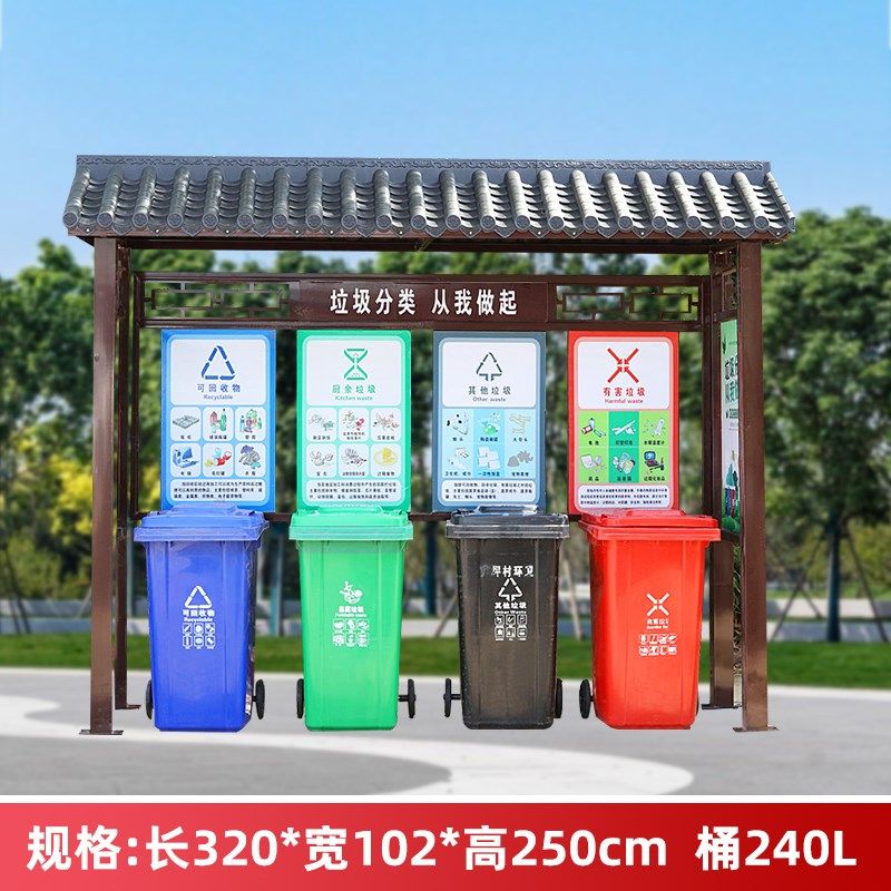 📚 垃圾分类亭定制户外烤漆仿古收集亭农村小区街道不锈钢镀锌垃圾站