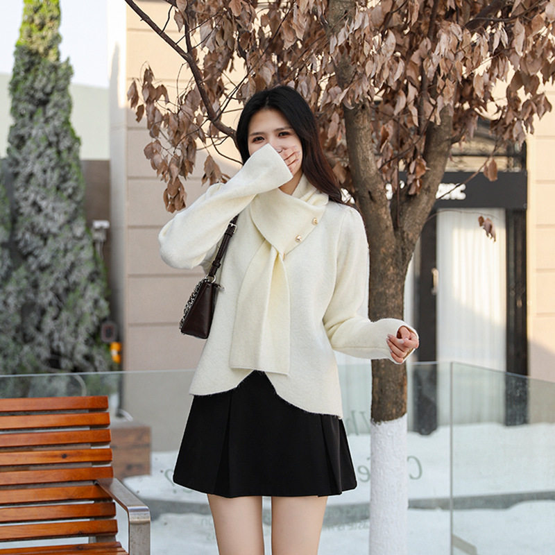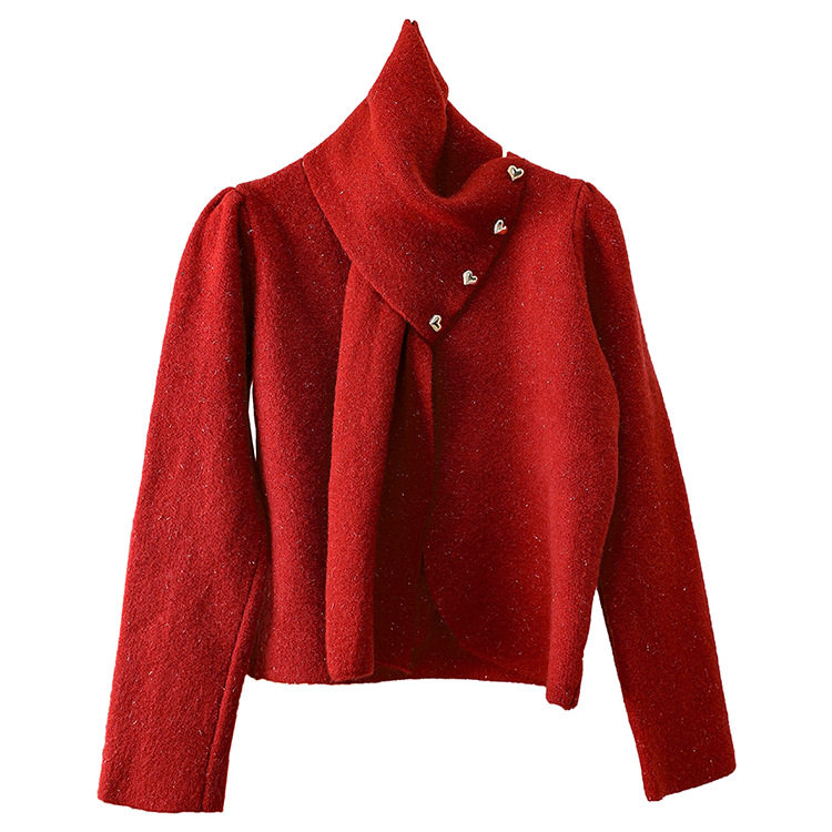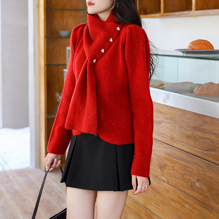 📚 严选新年红色毛衣小香风金丝亮闪闪可拆围巾开衫上衣羊棉绒