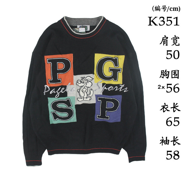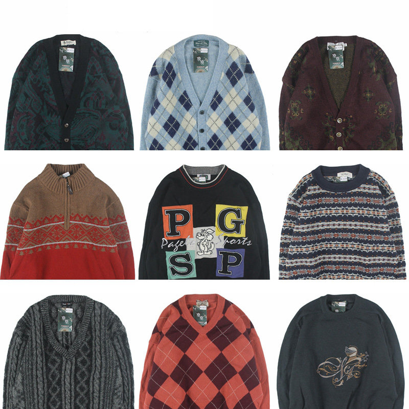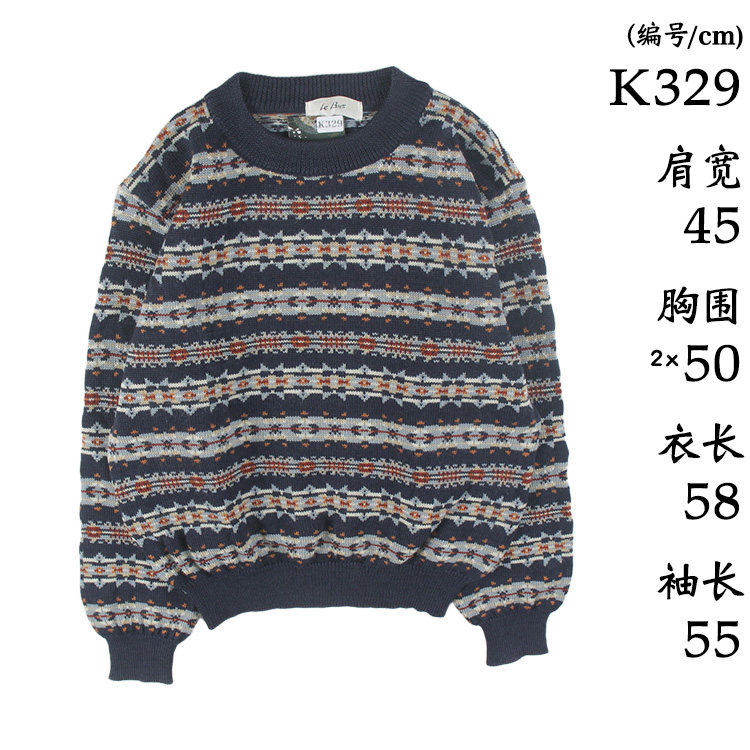 📚 古着vintage复古日系宽松刺绣几何撞色波普图案纯羊毛衣男女秋冬9