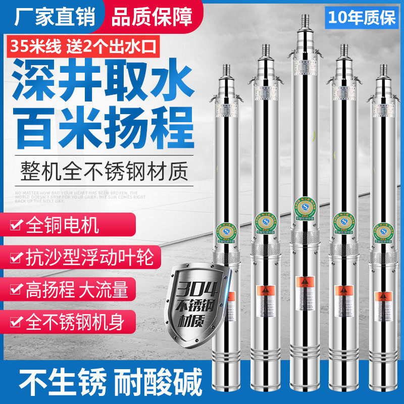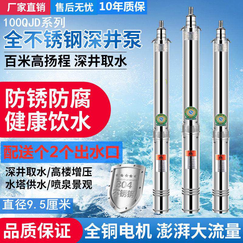 📚 全不锈钢家用深井泵潜水泵叶轮单相220V抽水泵灌溉高杨锃深水泵