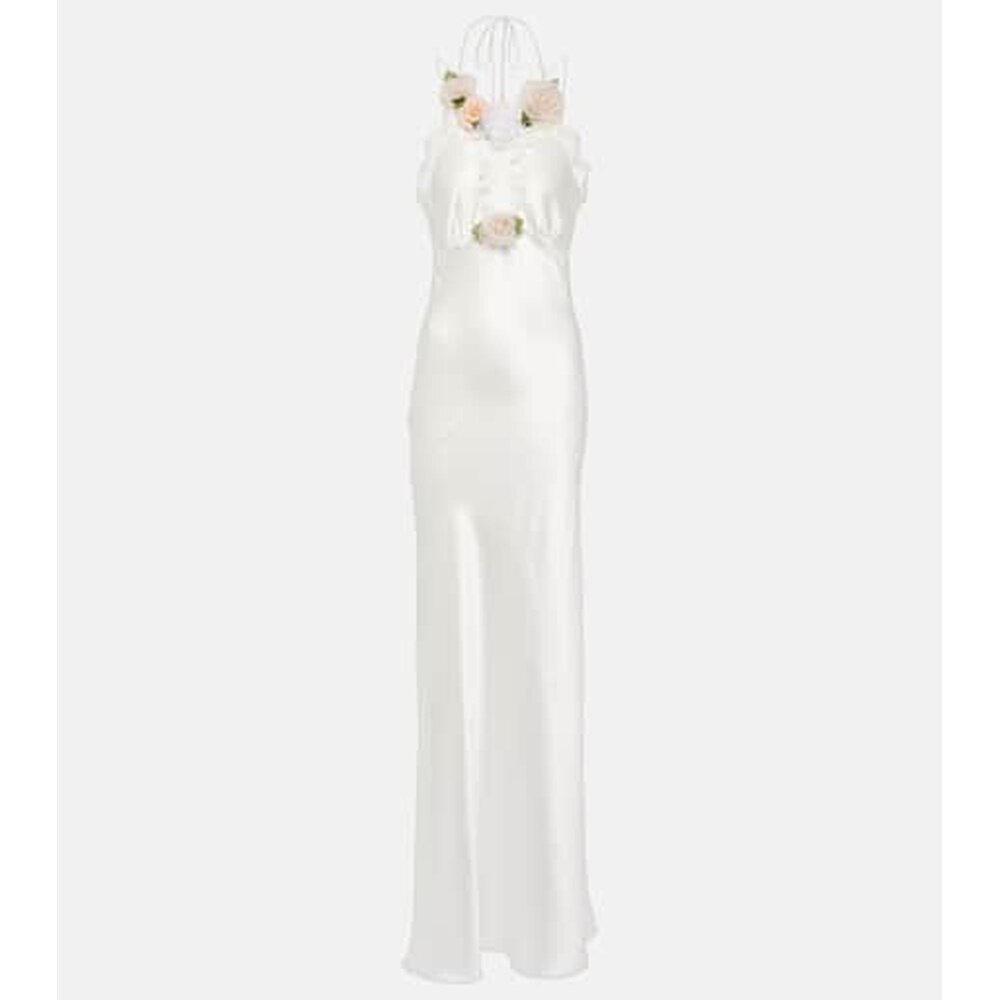 📚 1h可退 香港直邮RODARTE 女士 Bridal 花朵装饰蕾丝边真丝睡裙