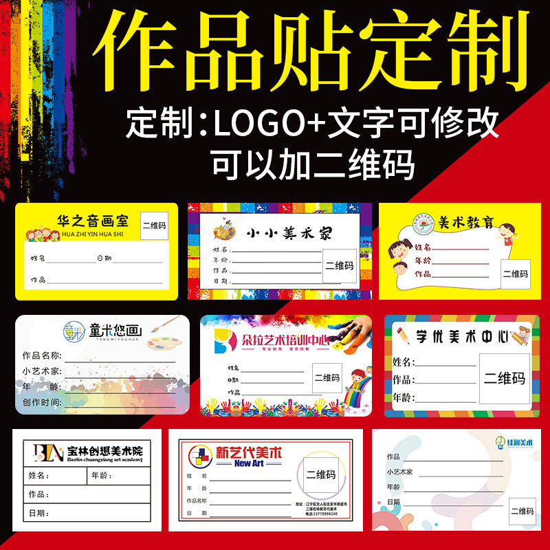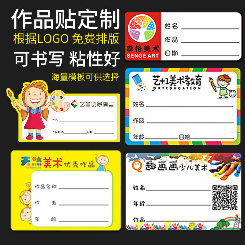 📚 美术作品标签贴定制培训机构绘画班学生空白姓名贴制作幼儿园艺术画展手写名字贴画室logo防水不干胶贴纸印刷