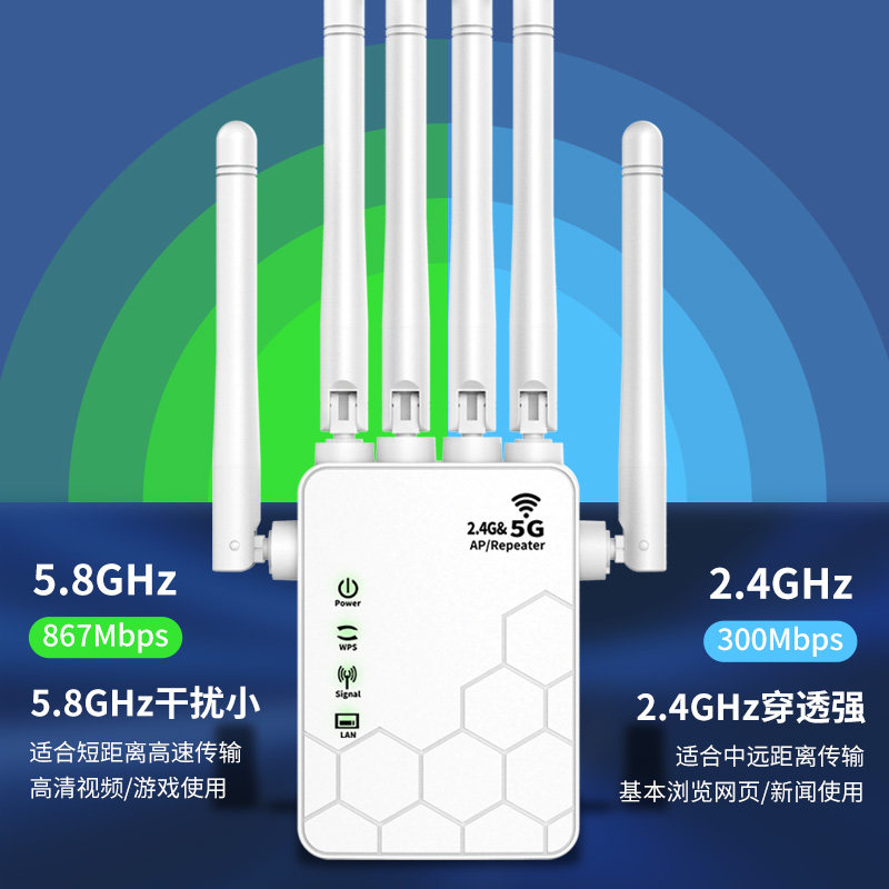 📚 wifi信号增强放大器家用路由器双频加强扩展网络无线网桥接接收扩大中继器有线网口高速覆盖远距离组网拓展
