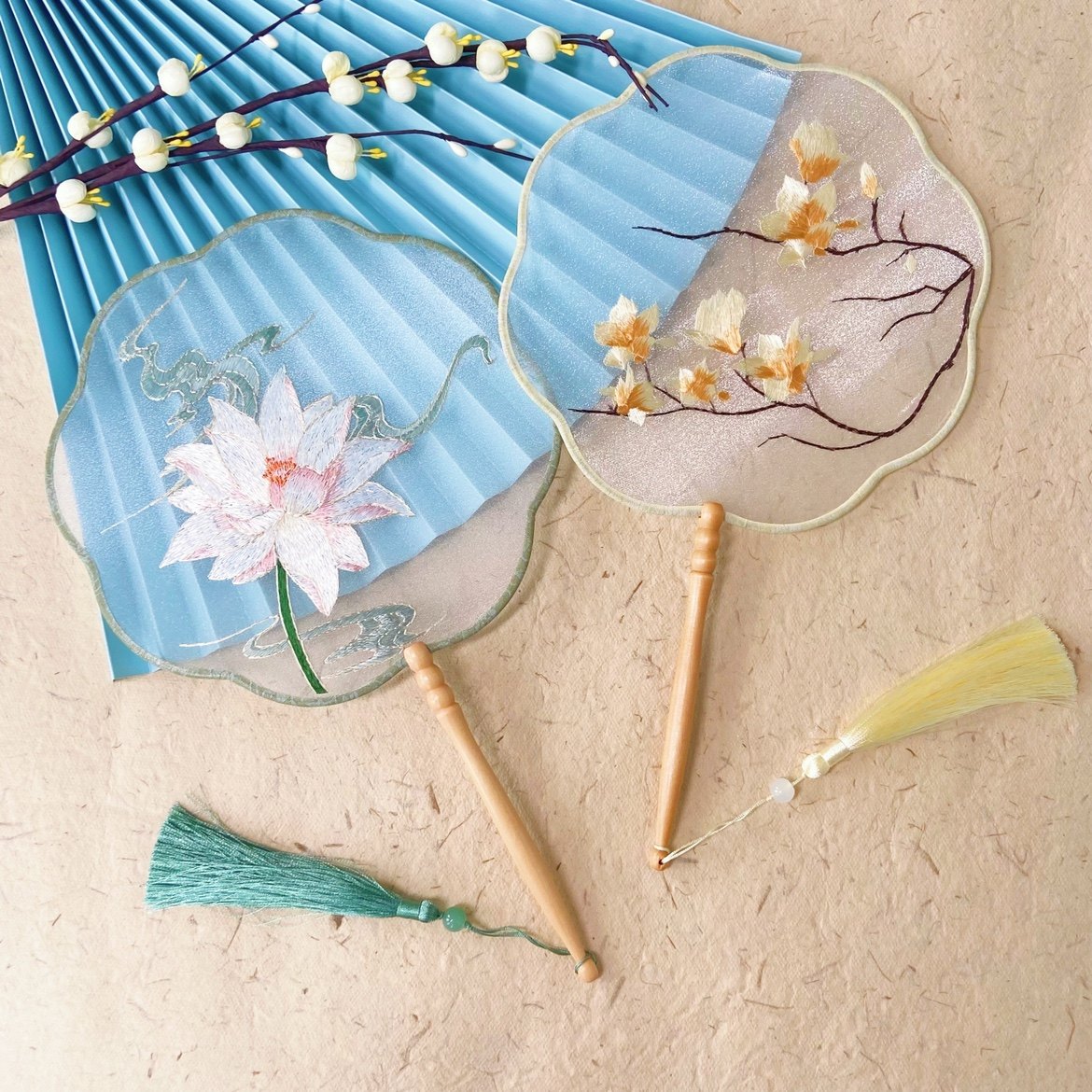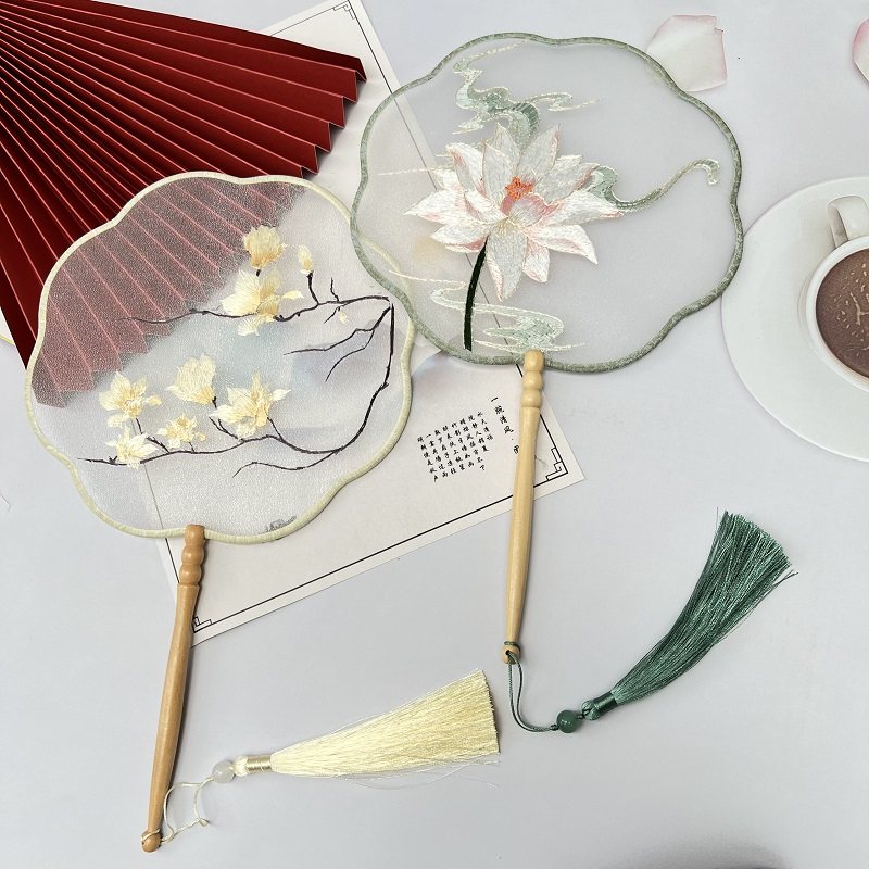 📚 古风刺绣团扇女中式汉服旗袍半透古装花边形刺绣古典国风舞蹈扇子