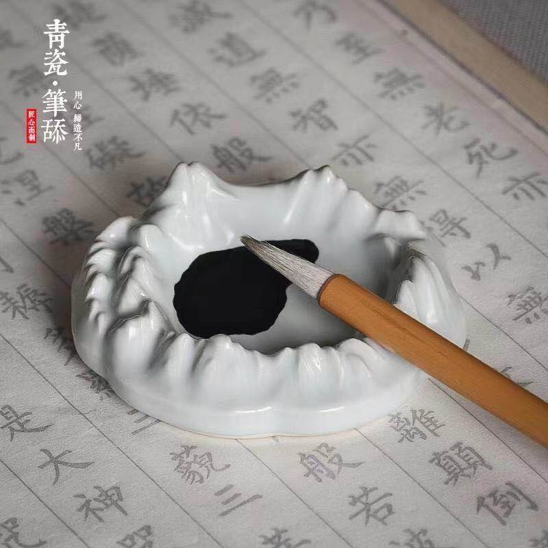📚 天一堂青瓷富士山笔舔学生创意多功能陶瓷墨碟初学者毛笔书法墨池墨盒国画用调色盘文房四宝笔搁摆件