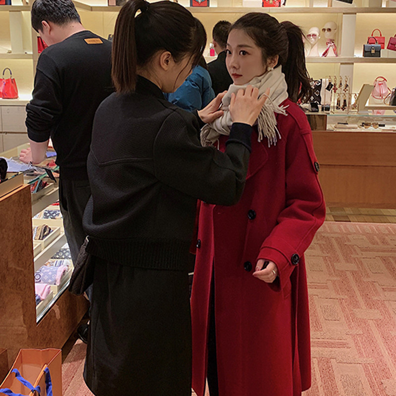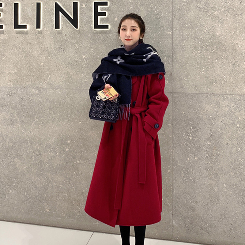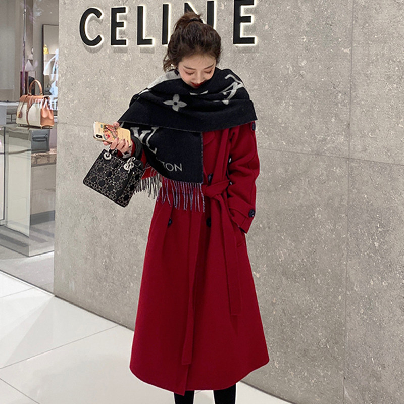 📚 亏本清仓冬装双面呢子赫本风羊毛红色外套结婚新娘零羊绒大衣女