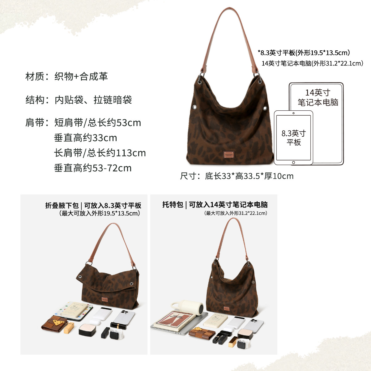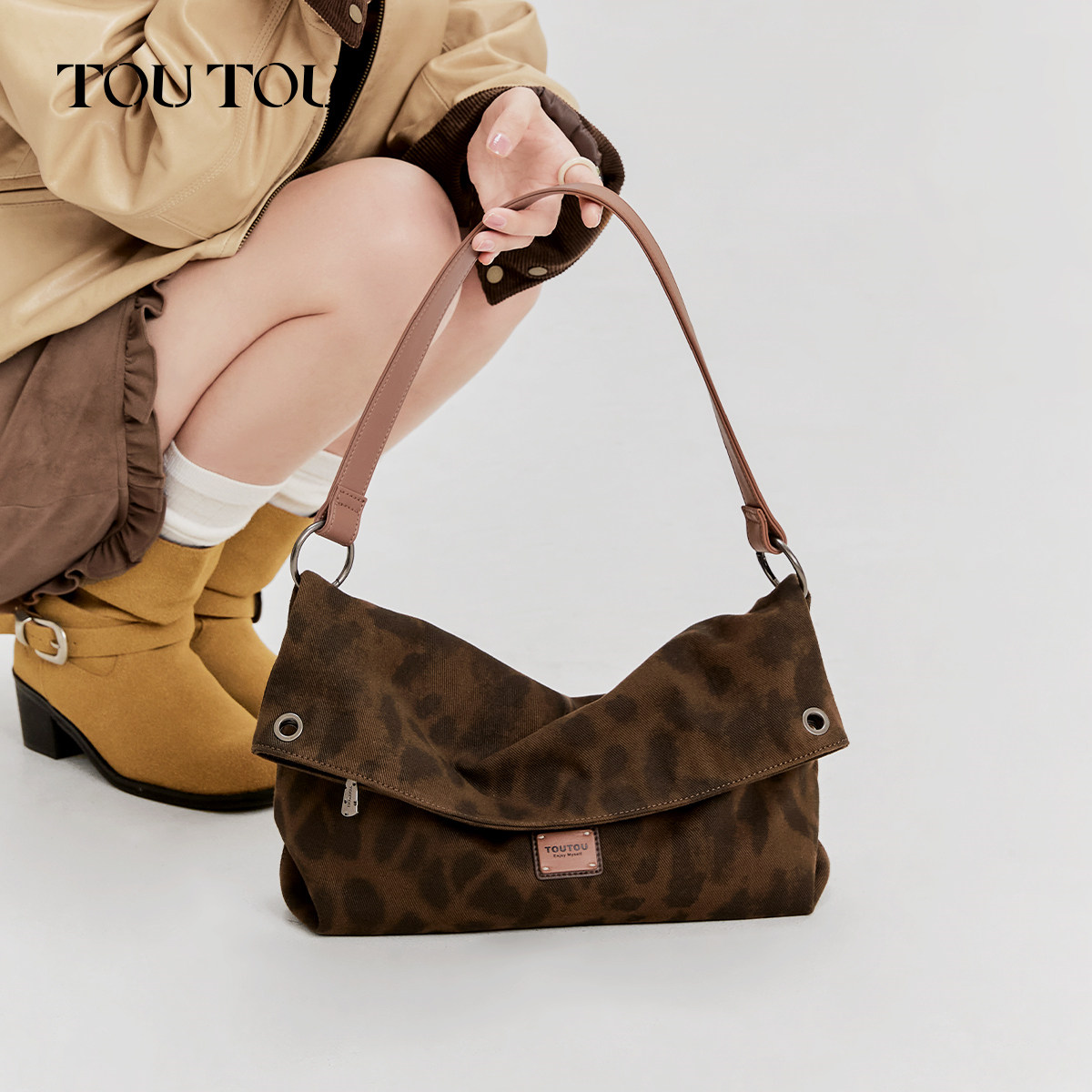 📚 新年礼物TOUTOU豹纹叠叠包大容量托特包通勤百搭腋下帆布斜挎包女