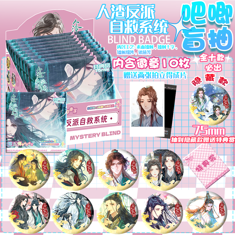 📚 人渣反派自救系统动漫周边吧唧75MM马口铁谷子盲盒盲袋盲抽