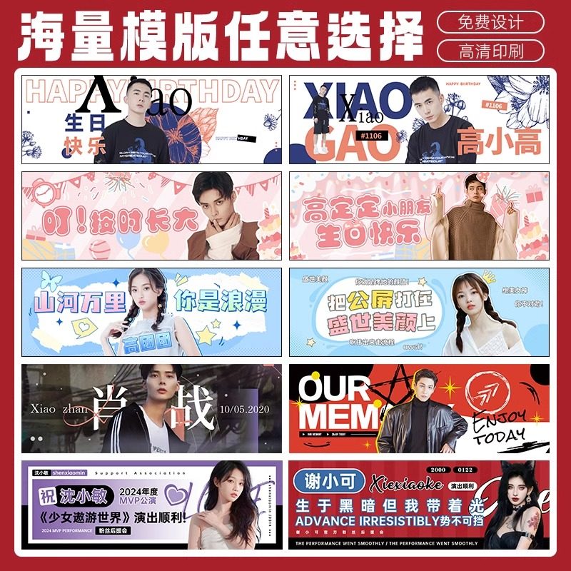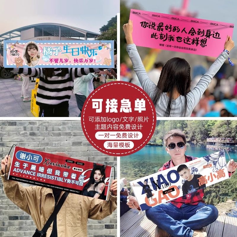 📚 手拉旗定制明星接机应援手拉条幅手幅制作生日拍照旅游小横幅设计