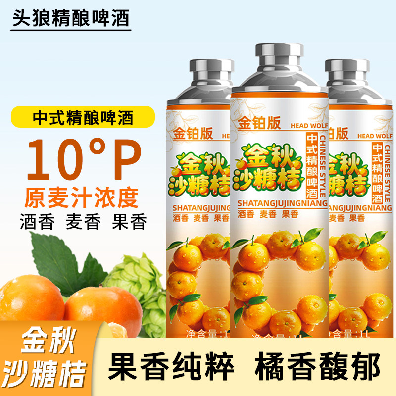 📚 头狼沙糖桔水果味鲜啤酒1L*6罐装果味网红精酿10°P中式精酿果啤