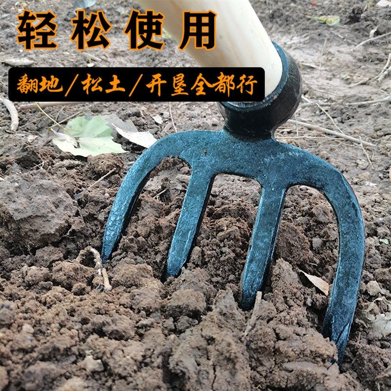 📚 荒翻地叉锄松土三齿四齿土农用园林园艺叉耙种种菜平地刨坑