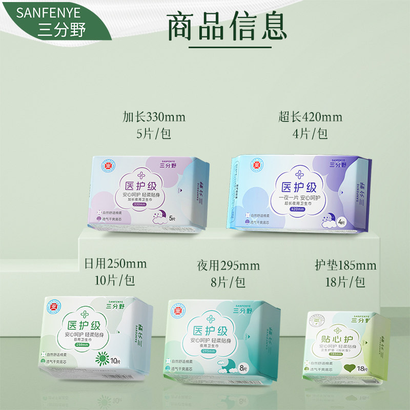 📚 三分野医护级卫生巾薄款防漏棉柔日用护垫组合姨妈巾干爽透气68片
