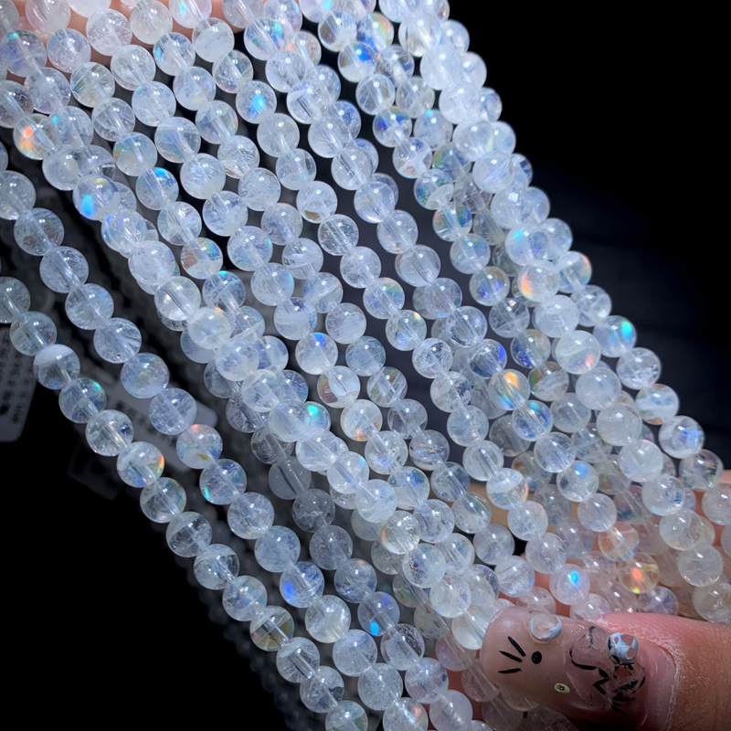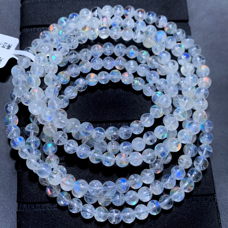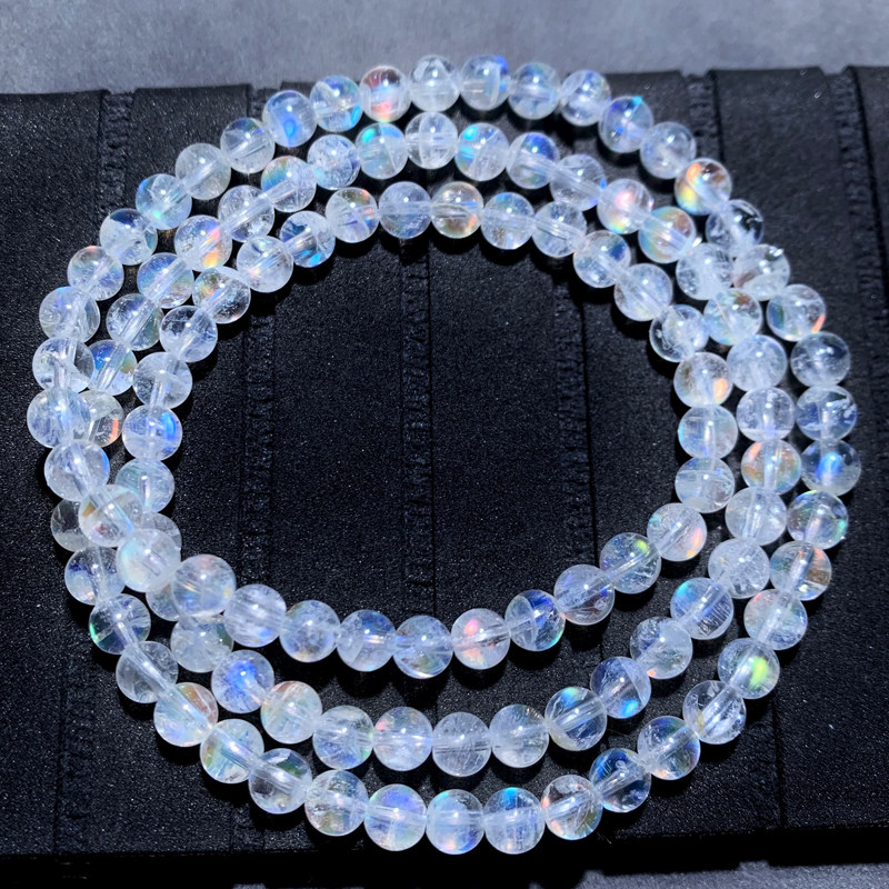 📚 天然马岛月光石三圈手链彩月光石冰种玻璃体彩虹手串礼物饰品男女