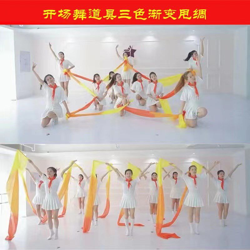 📚 速发舞场中道具长绸舞黄橙红渐变彩绸甩绸飘带舞国舞长绸子开场开