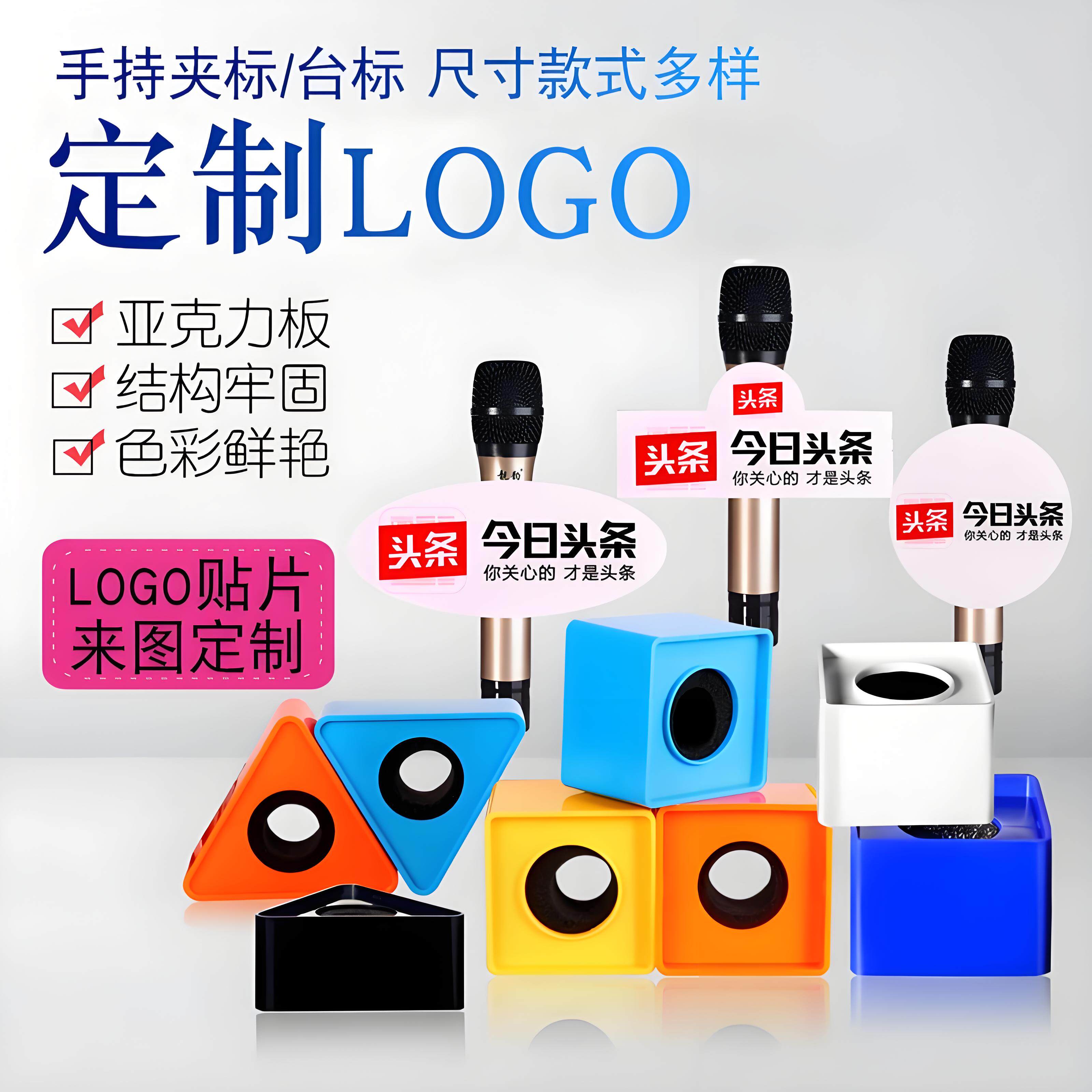 📚 道具话筒台标logo定制亚克力板麦牌麦标卡扣新闻记者婚礼采访道具
