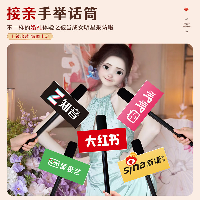 📚 接亲游戏仿真话筒结婚拍照道具婚礼新娘采访麦克风创意氛围感搞笑