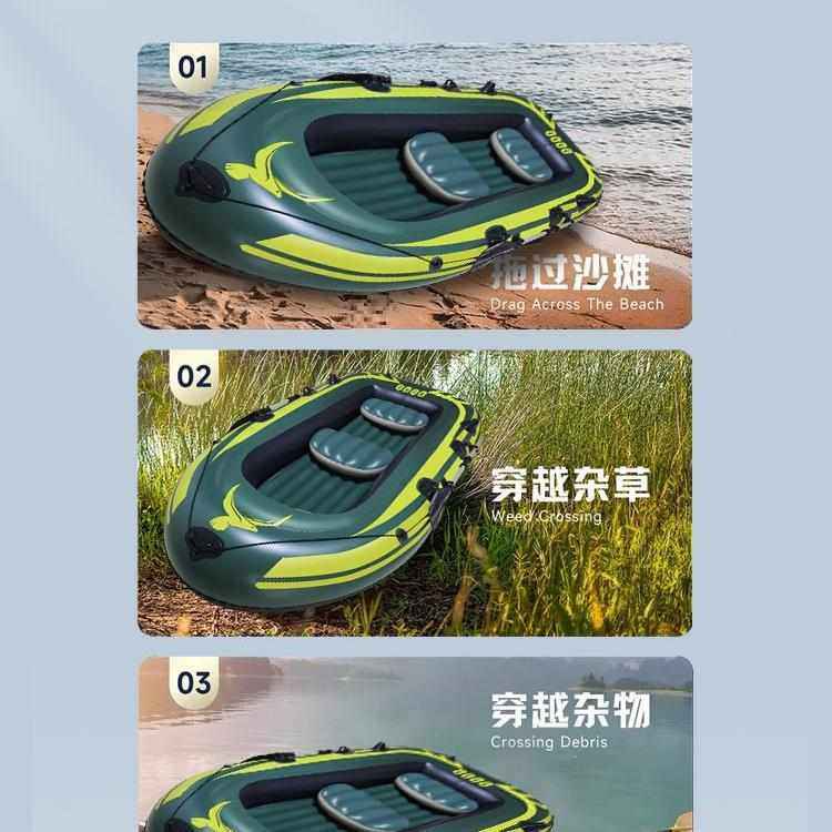 📚 皮划艇充气船加厚耐磨冲锋舟橡皮艇钓鱼漂流户外气垫船折叠皮筏艇