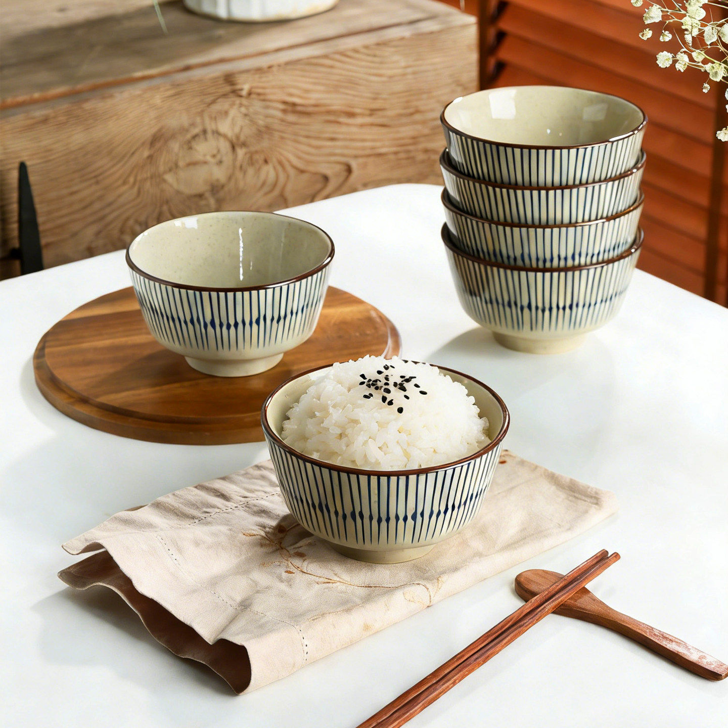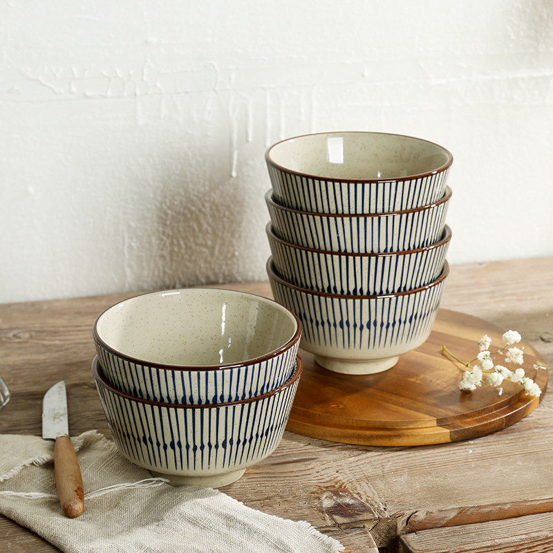 📚 日式釉下彩蓝雨5寸米饭碗家用2025新款高颜值餐具陶瓷碗饭碗面碗