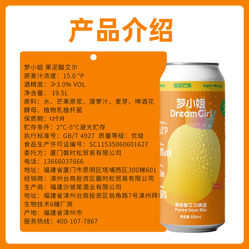 📚 沙坡尾酿造低度微醺梦小姐果泥酸艾尔啤酒芒果味精酿啤酒
