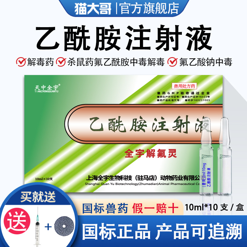 📚 乙酰胺注射液兽用猫狗宠物解毒药杀鼠虫药中毒氟乙酰胺中毒急救药
