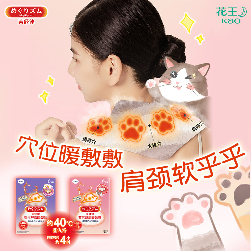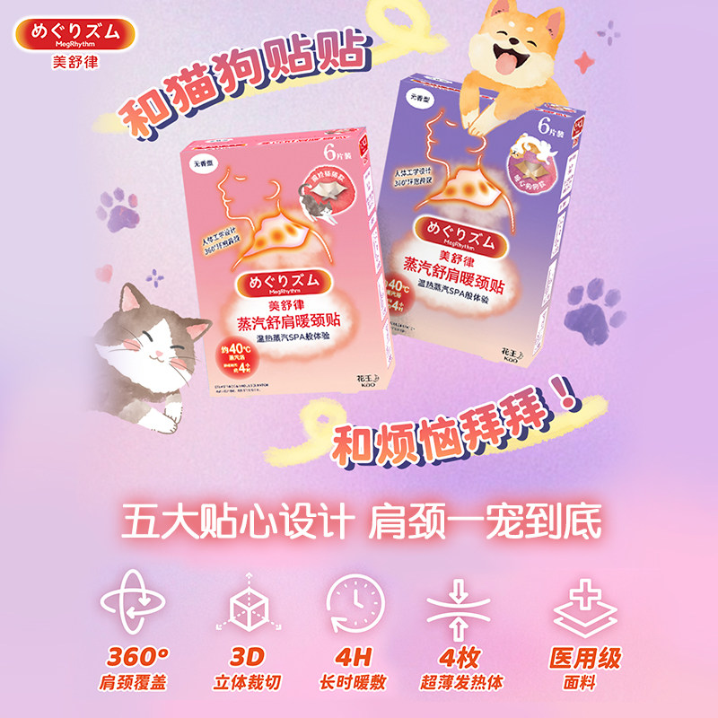 📚 花王美舒律肩颈贴蒸汽贴放松肩颈热敷蓬松贴合暖心狗狗款6片装