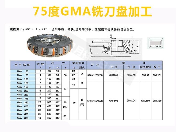 📚 75度可转位面铣刀刀盘 铣刀盘 63 80 100 125 160 200 250 315