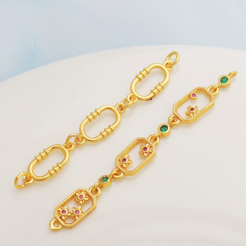 📚 18K包金保色哑金锆石镶钻长方三连串吊坠diy手链项链接串吊饰配件