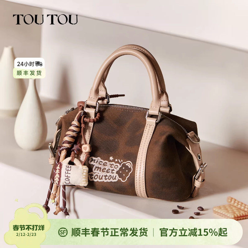 📚 TOUTOU新款豹纹帆布波士顿包可爱手提枕头包通勤简约单肩斜挎包女