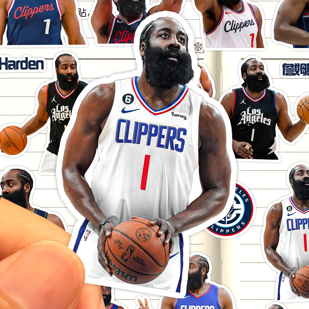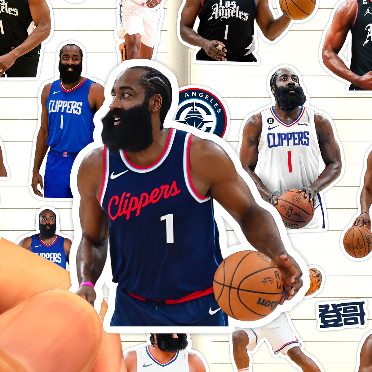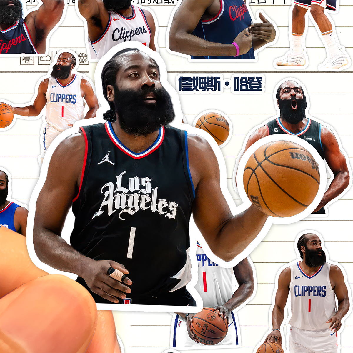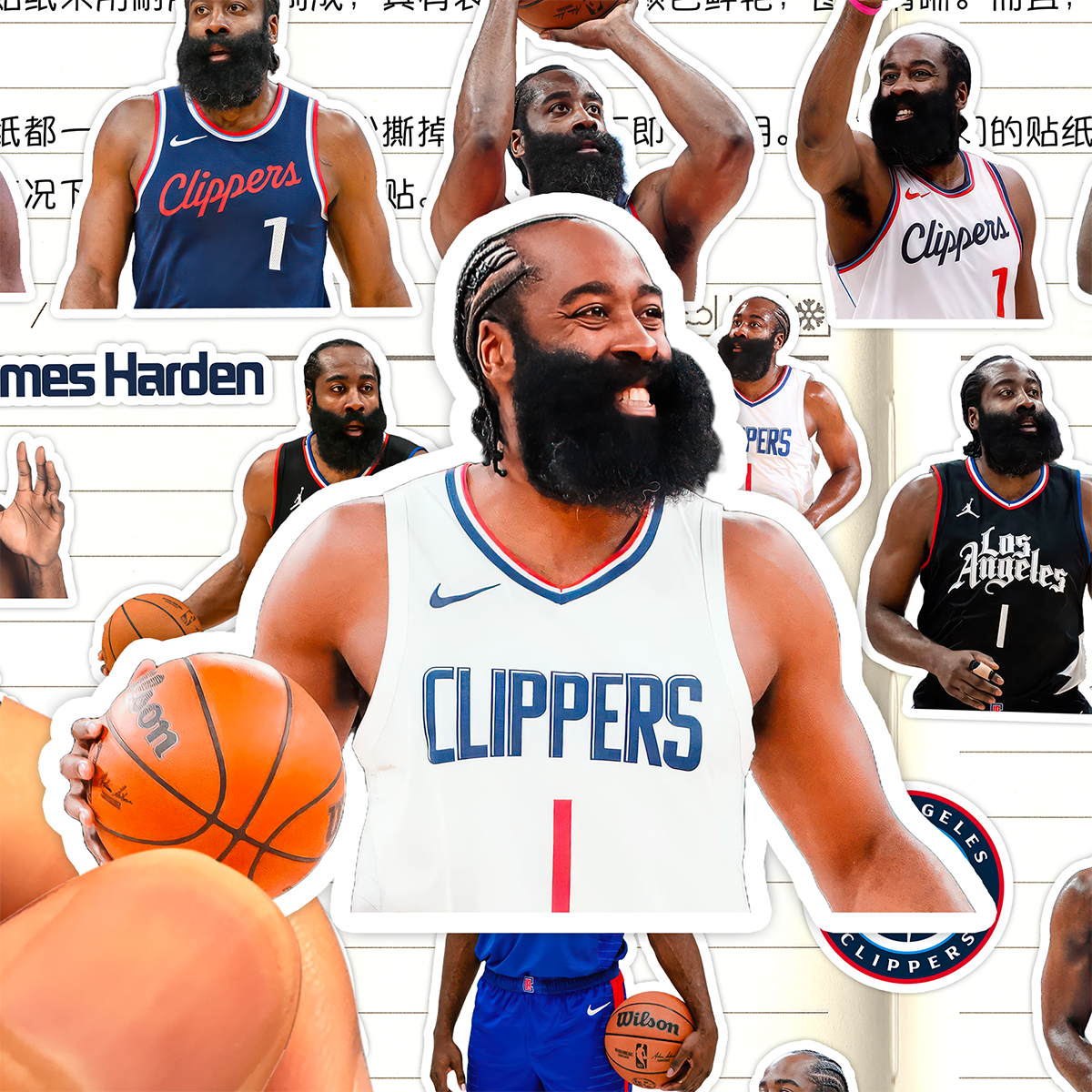 📚 詹姆斯哈登贴纸高清防水快船队篮球运动员James Harden登哥粘贴画