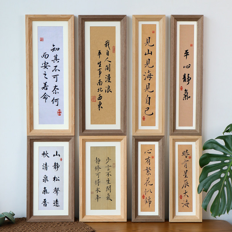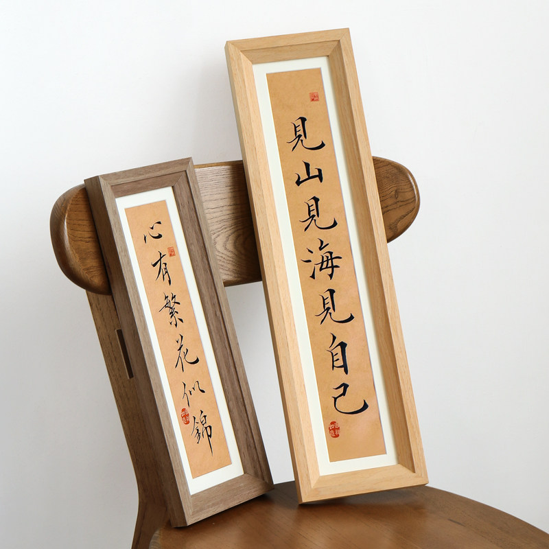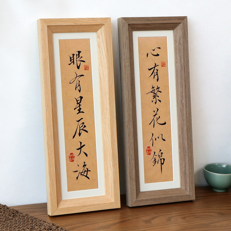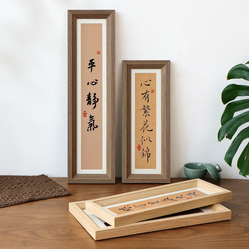 📚 中式文字书法作品装裱相框摆台长条高级感实木长方形毛笔字画挂墙