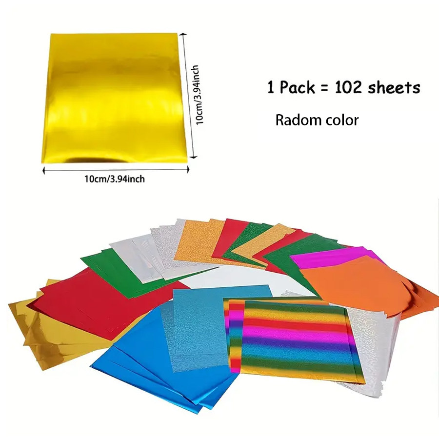 📚 Metallic Hot Foil Paper混色102张金银彩色铝箔烫金纸刮刮画转印