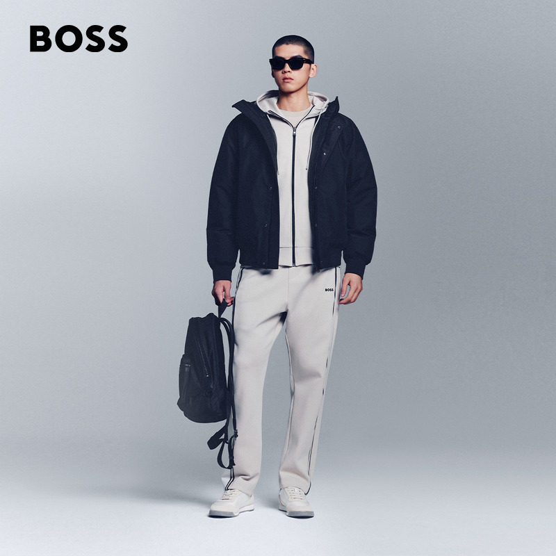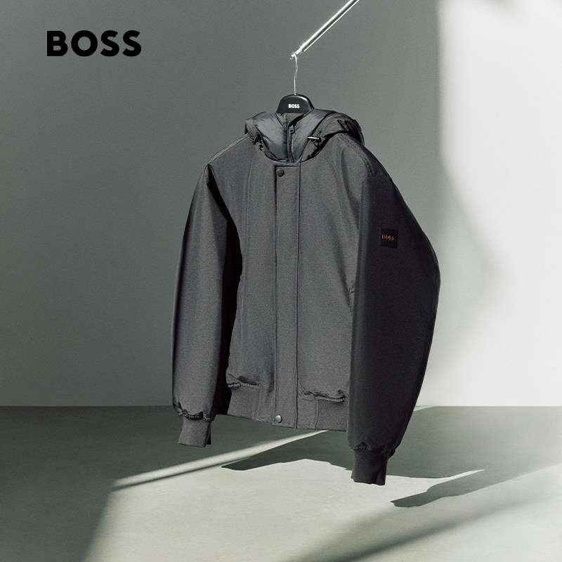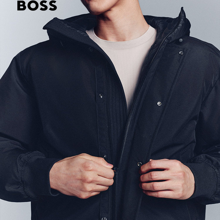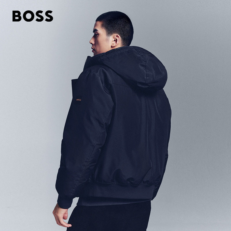 📚 【保暖】BOSS博斯 男士冬款徽标装饰双重门襟连帽羽绒服