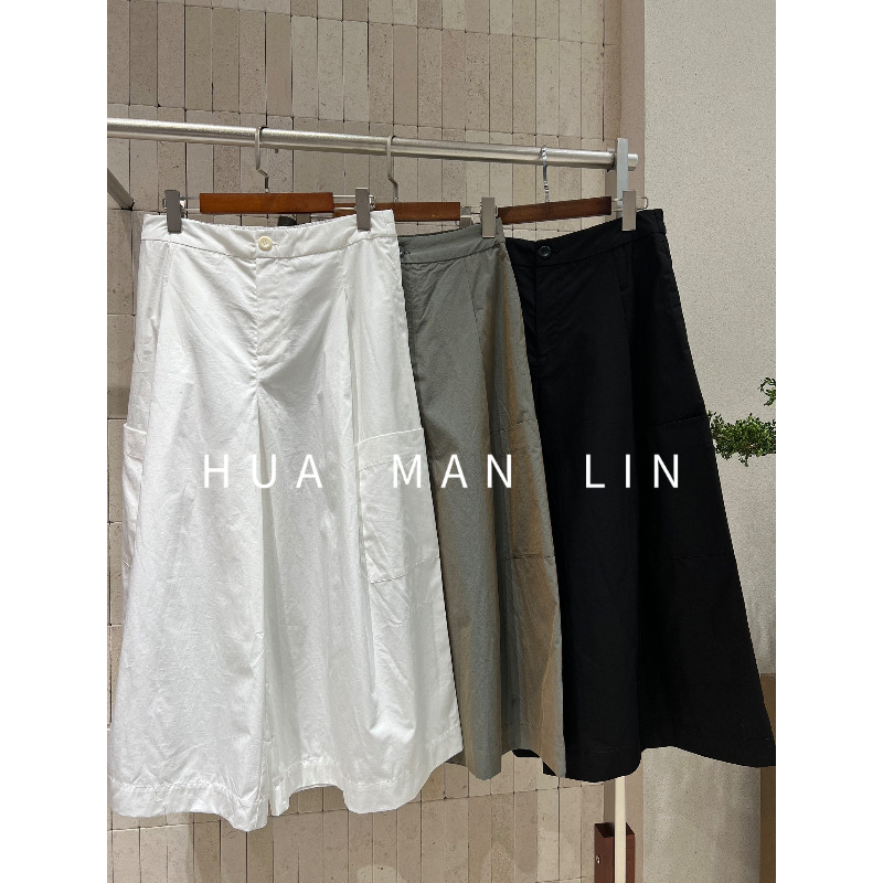 📚 【花满林】三色一粒扣后松紧腰大口袋匹马棉阔腿裤03207
