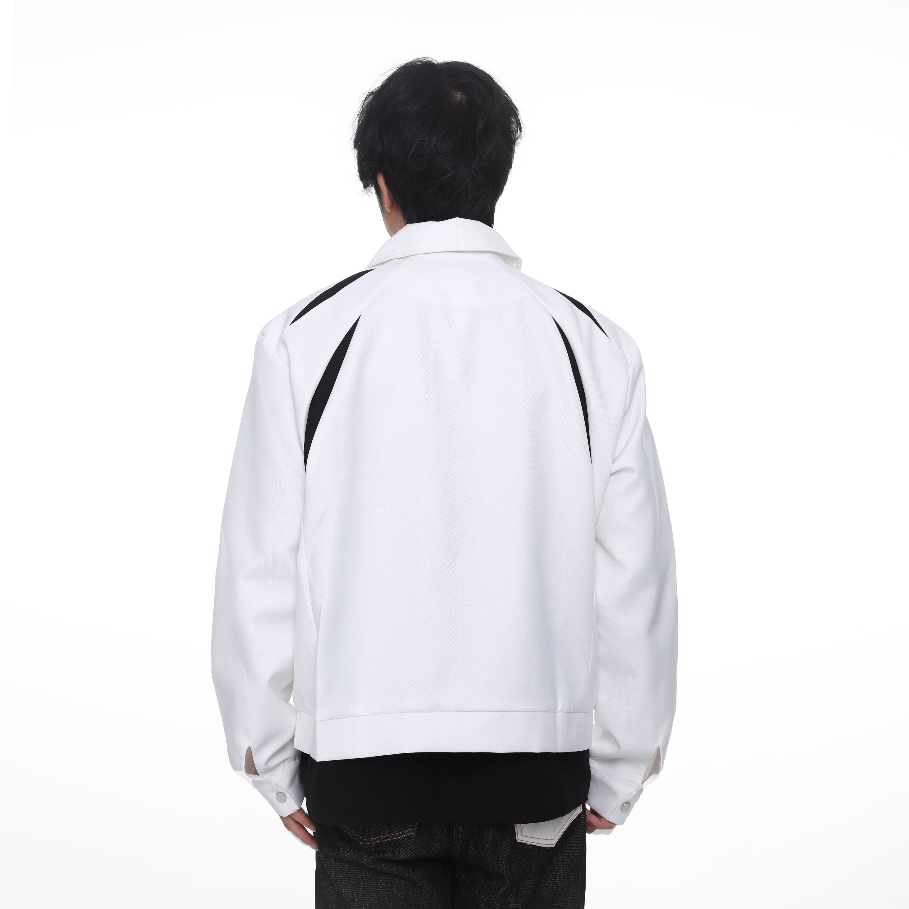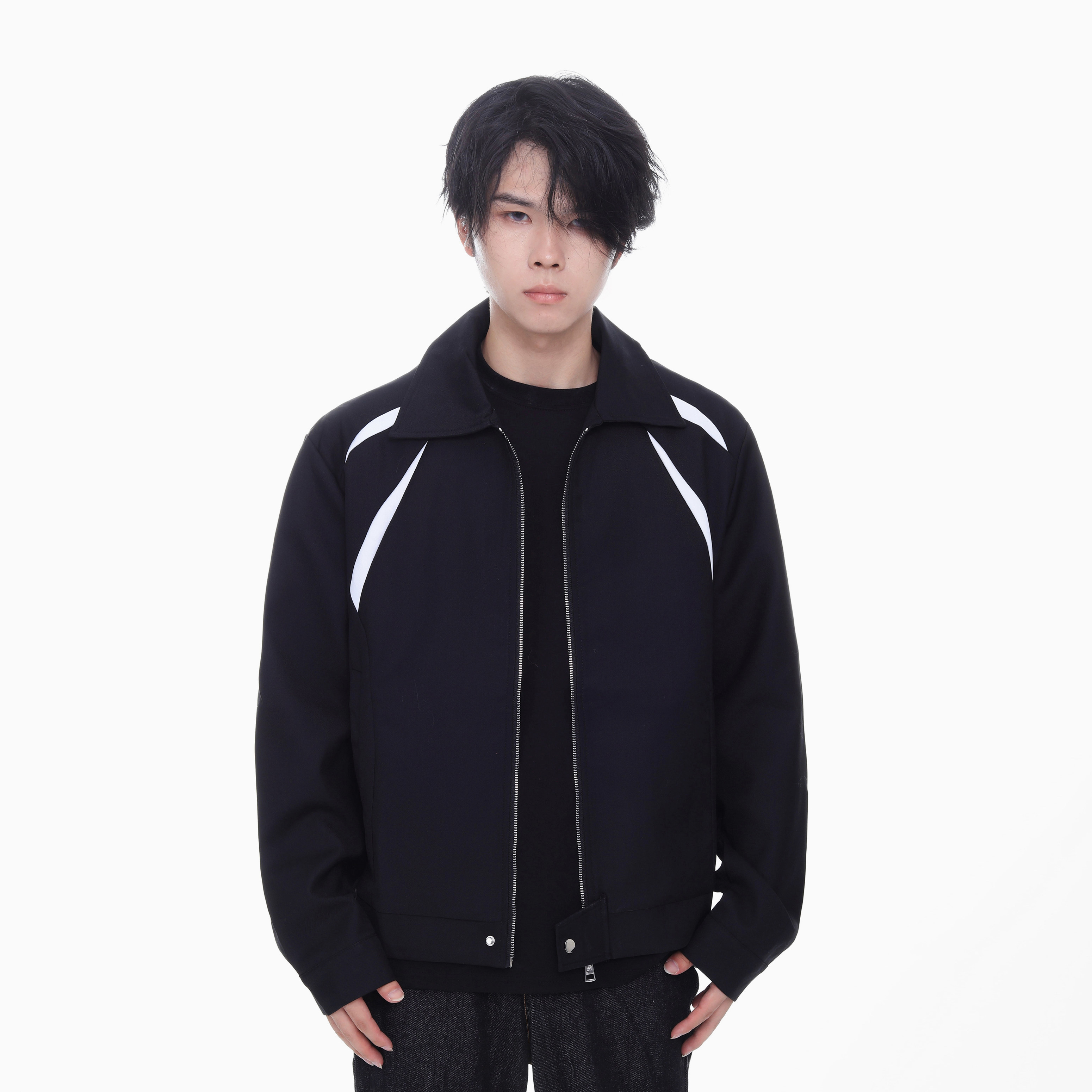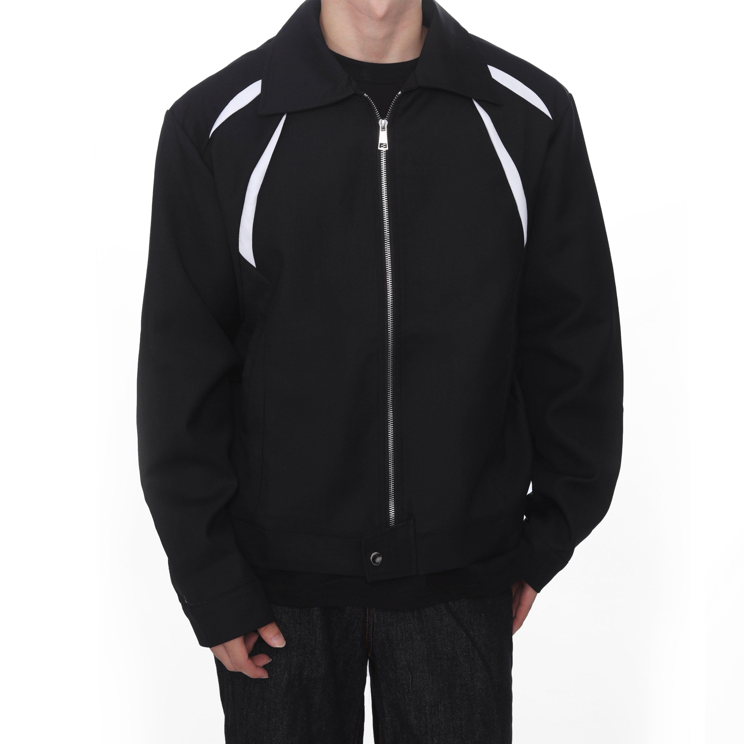 📚 COCKTAIL BAR美式复古秋季撞色线条拼接夹克cleanfit翻领外套男