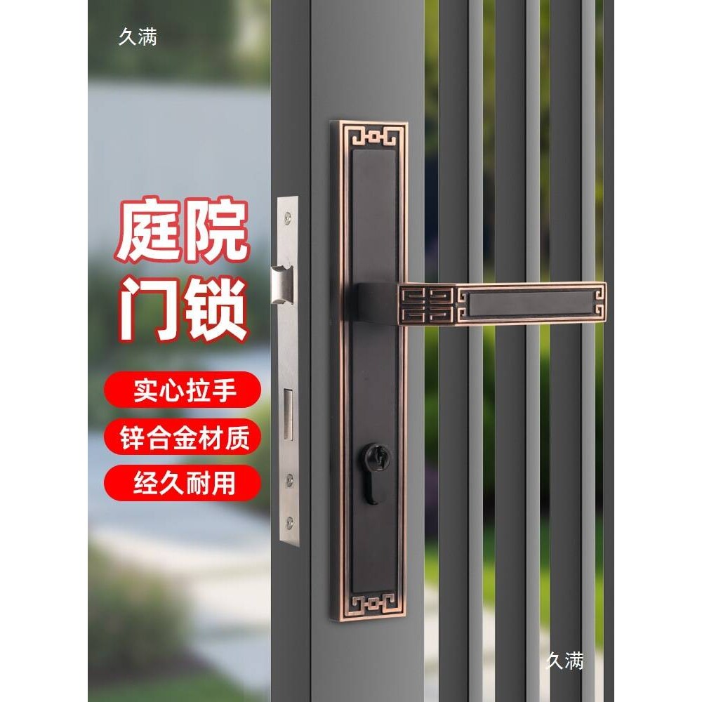 📚 室外庭院门锁铁门欧式户外铝艺门把手锌合金入户窄面锁具