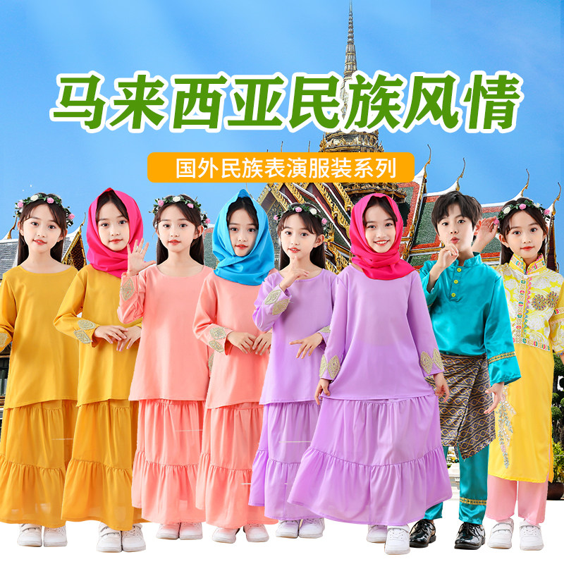 📚 马来西亚童装东南亚男女童东盟十国幼儿园表演老挝文莱特色演出服