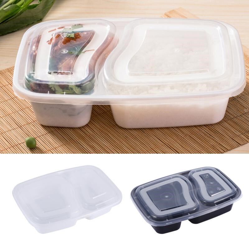 📚 10Pcs/Set 2 Compartment Meal Prep Plastic Food Container Lun