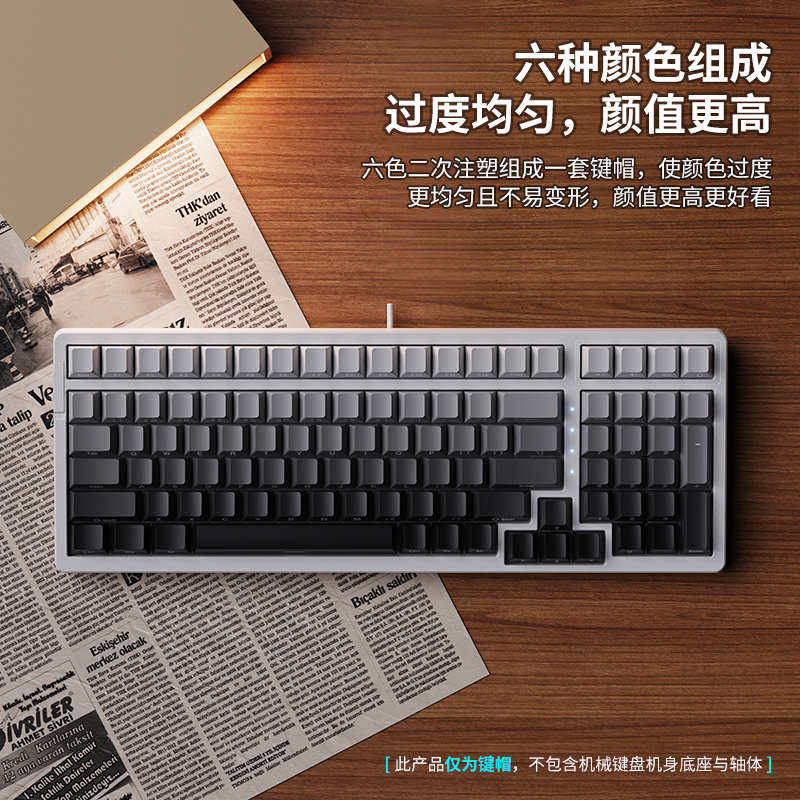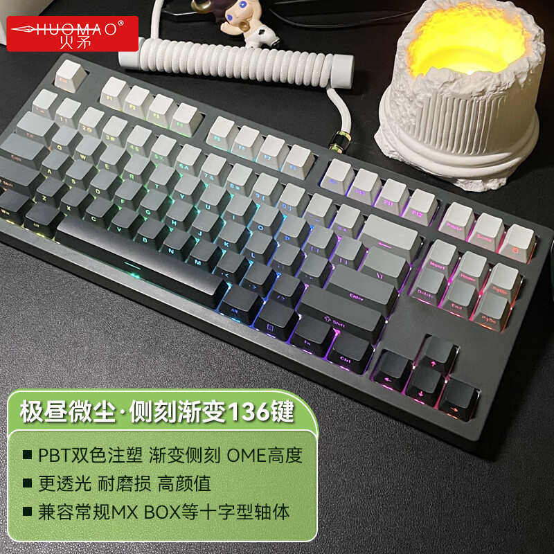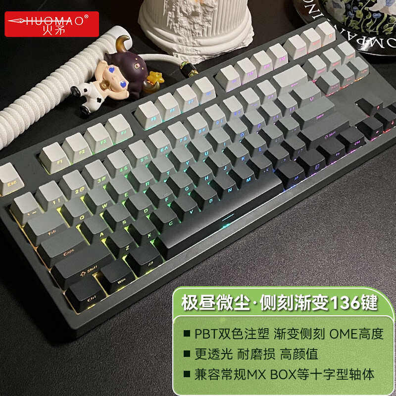 📚 《极昼微尘》侧刻键帽黑色渐变字透OEM高度PBT材质136键盒装全套