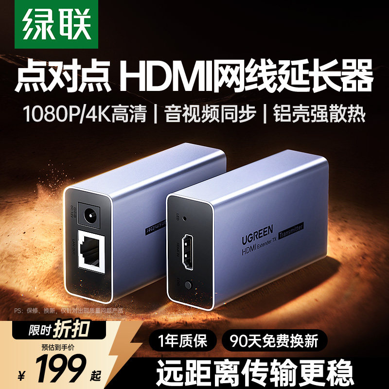 📚 绿联hdmi网线延长器50/150/200米4k高清rj45网口音视频转换监控信号局域网放大增强usb接头kvm收发网络传输器