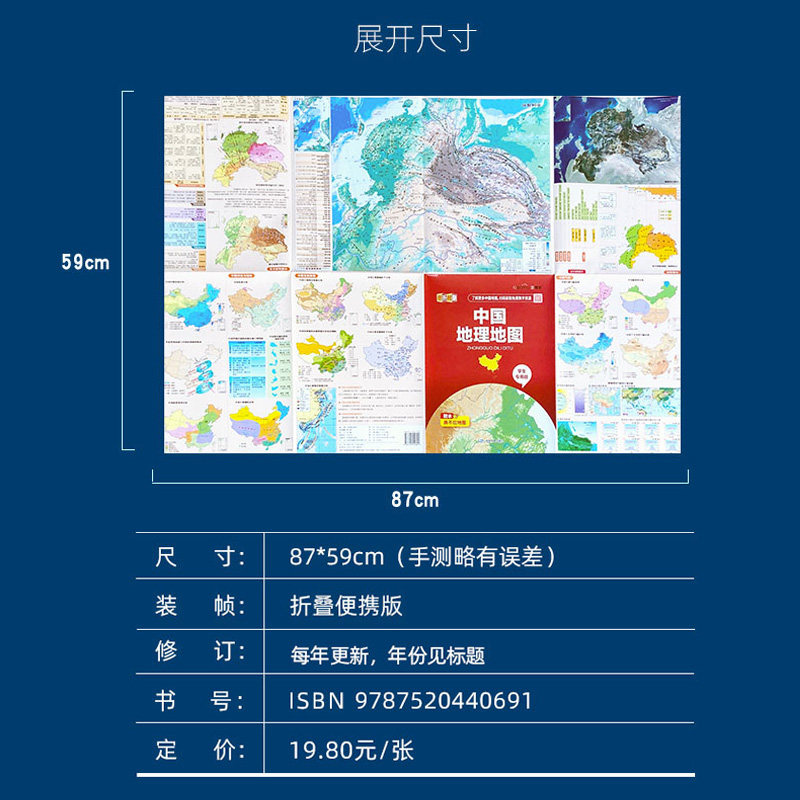 📚 【初中高中 学生专用版】2025年新版中国地图和世界地图地理知识版 中国政区图和中国地形图河流湖泊地理知识集锦 中学生专用地图