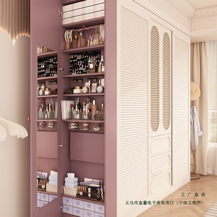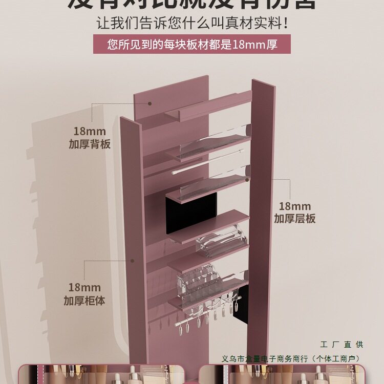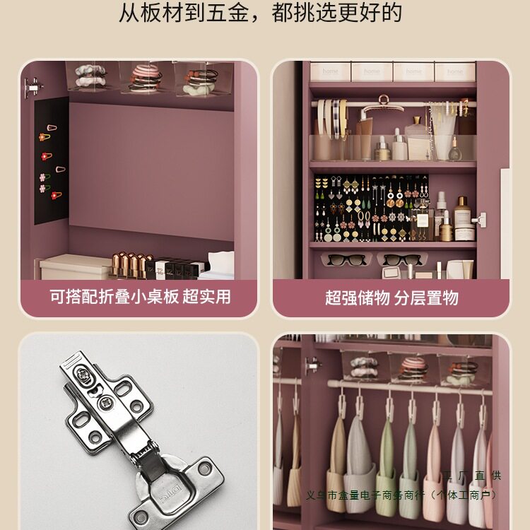 📚 2026复古落地首饰柜家用奶油风化妆柜站立全身穿衣镜衣柜侧边薄柜