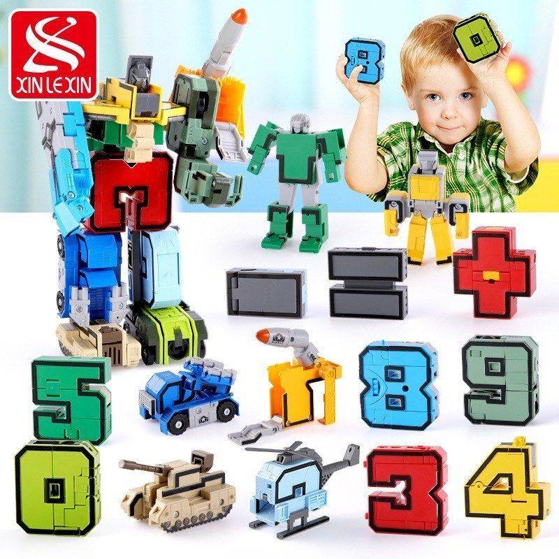 📚 新乐新数字变形机器人金刚字母变形拼装合体积木儿童益智玩具礼物