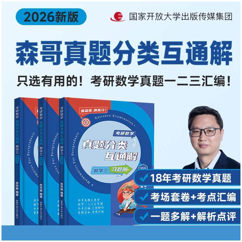 📚 考研数学真题分类互通解 数学三 2026版(全3册) 余丙森 编 托福/TOEFL文教 新华书店正版图书籍 国家开放大学出版社