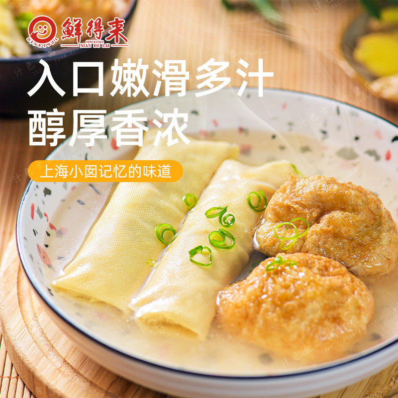 📚 3袋鲜得来双档水面筋塞肉百叶包中华老字号美食点心肉汤上海小吃