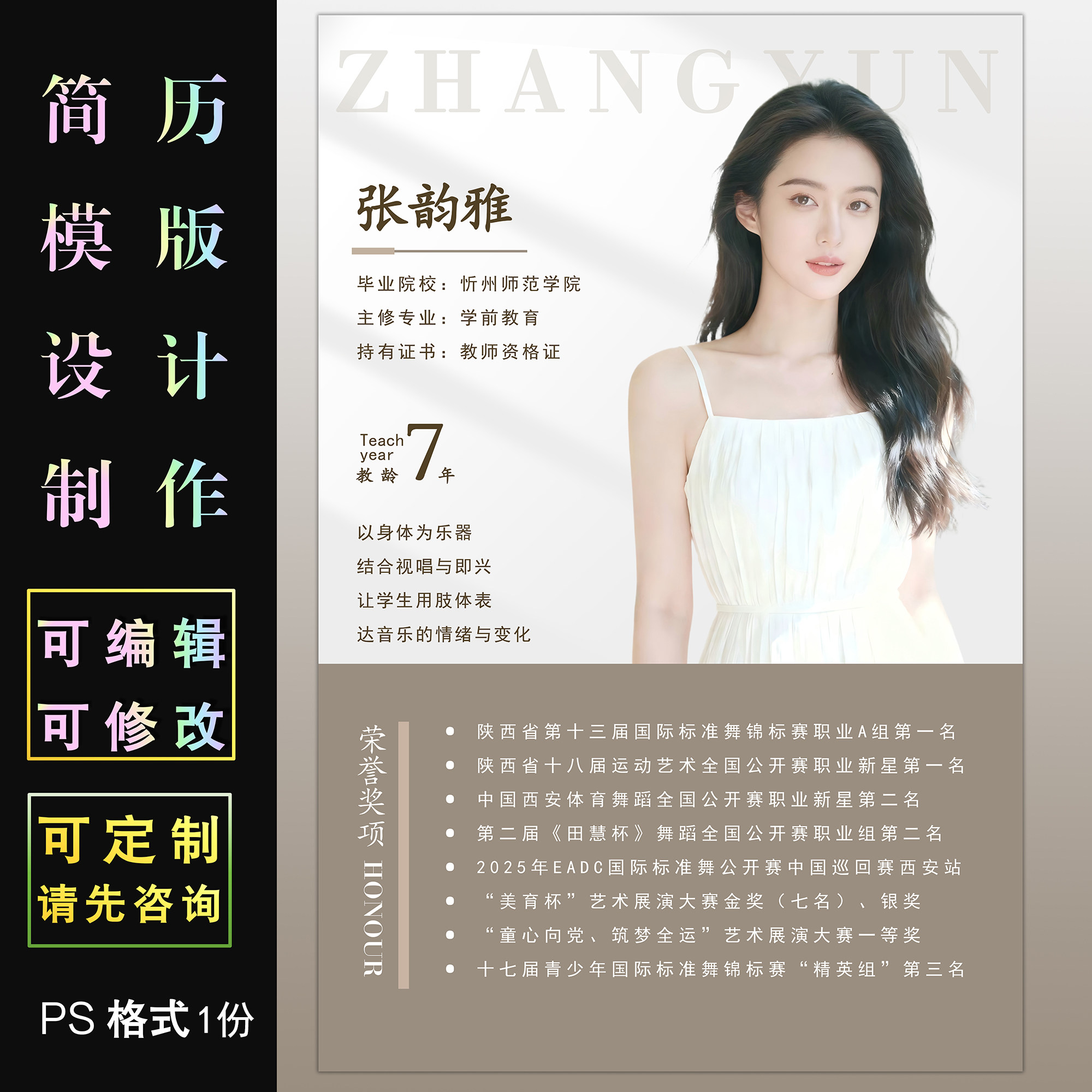 📚 教师个人简历设计制作ps格式模板可编辑修改老师简介海报电子版